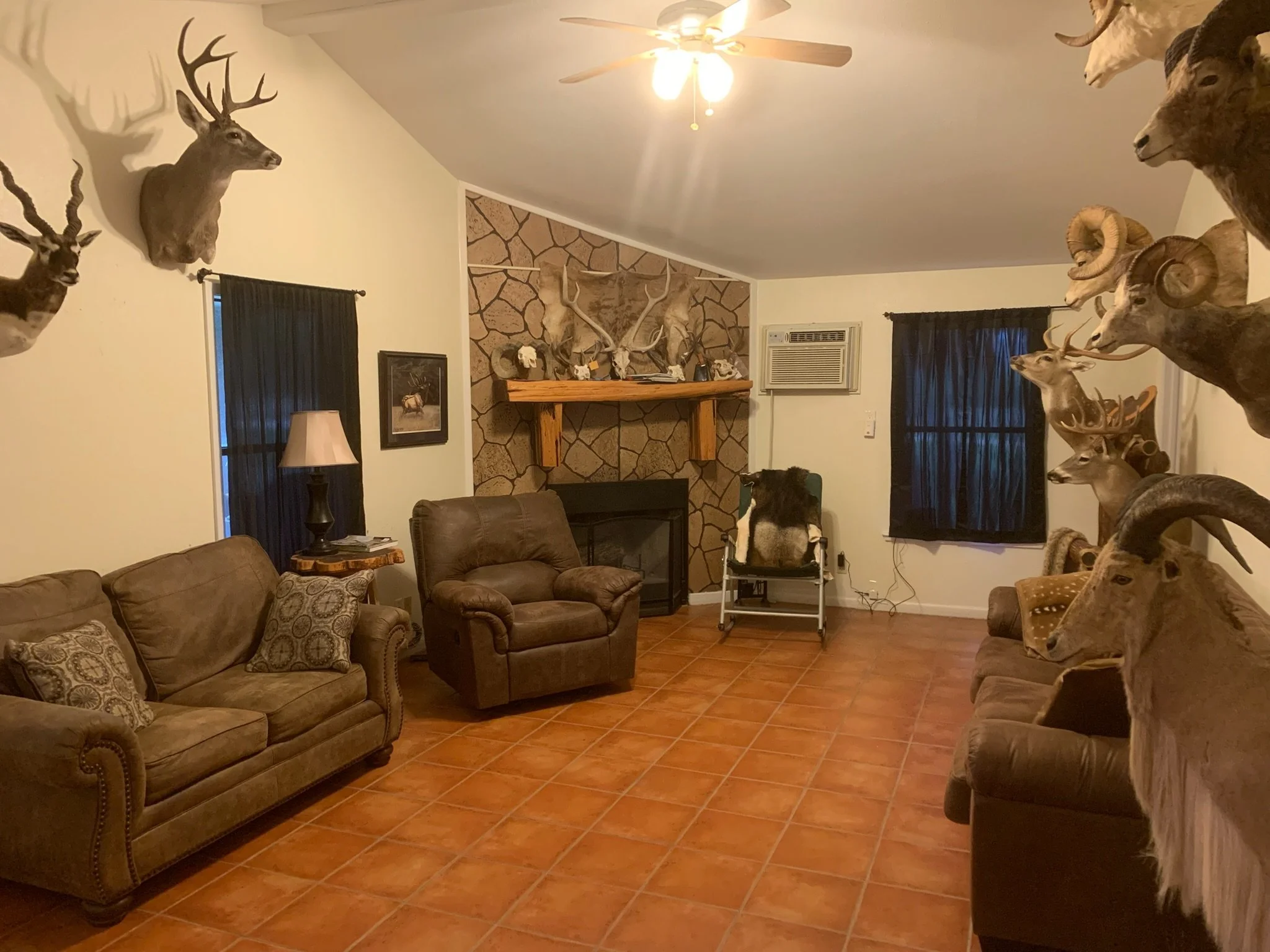 Mornings start early. Head out with your guide to one of several blinds across the property (river bottoms, hillsides, open flats), depending on what you’re hunting and where cameras are showing activity. Come back mid-morning for breakfast, and head out again in the afternoon.